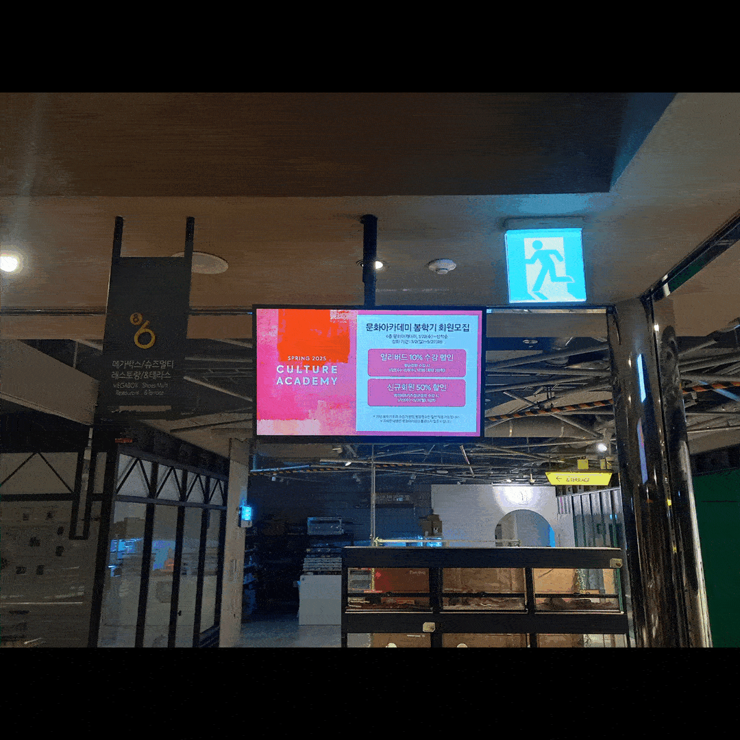 에이브이팝.AVPOP.AK& 수원점 에스컬레이터 행잉형 DID 모니터 설치사례 및 시공사례